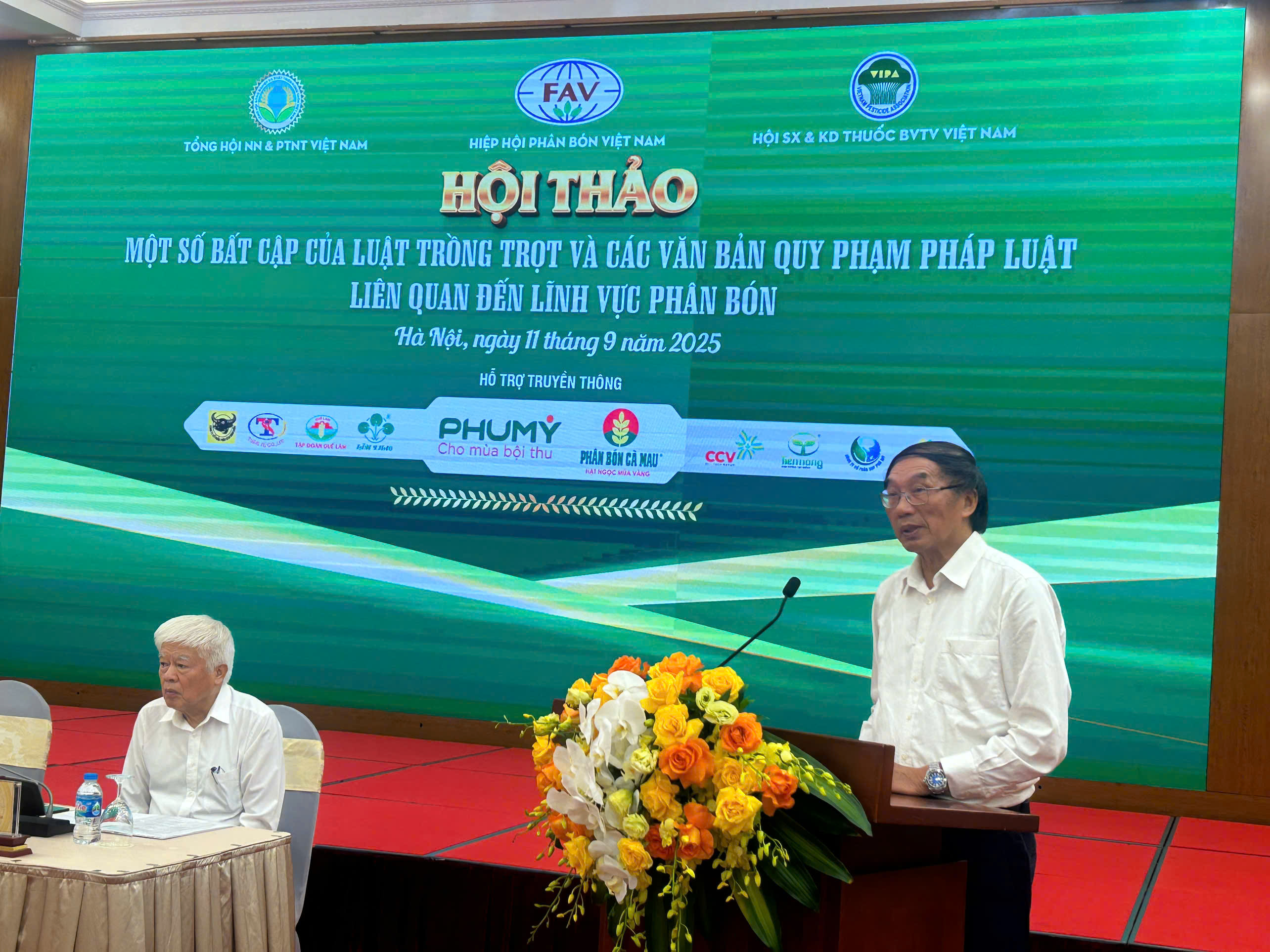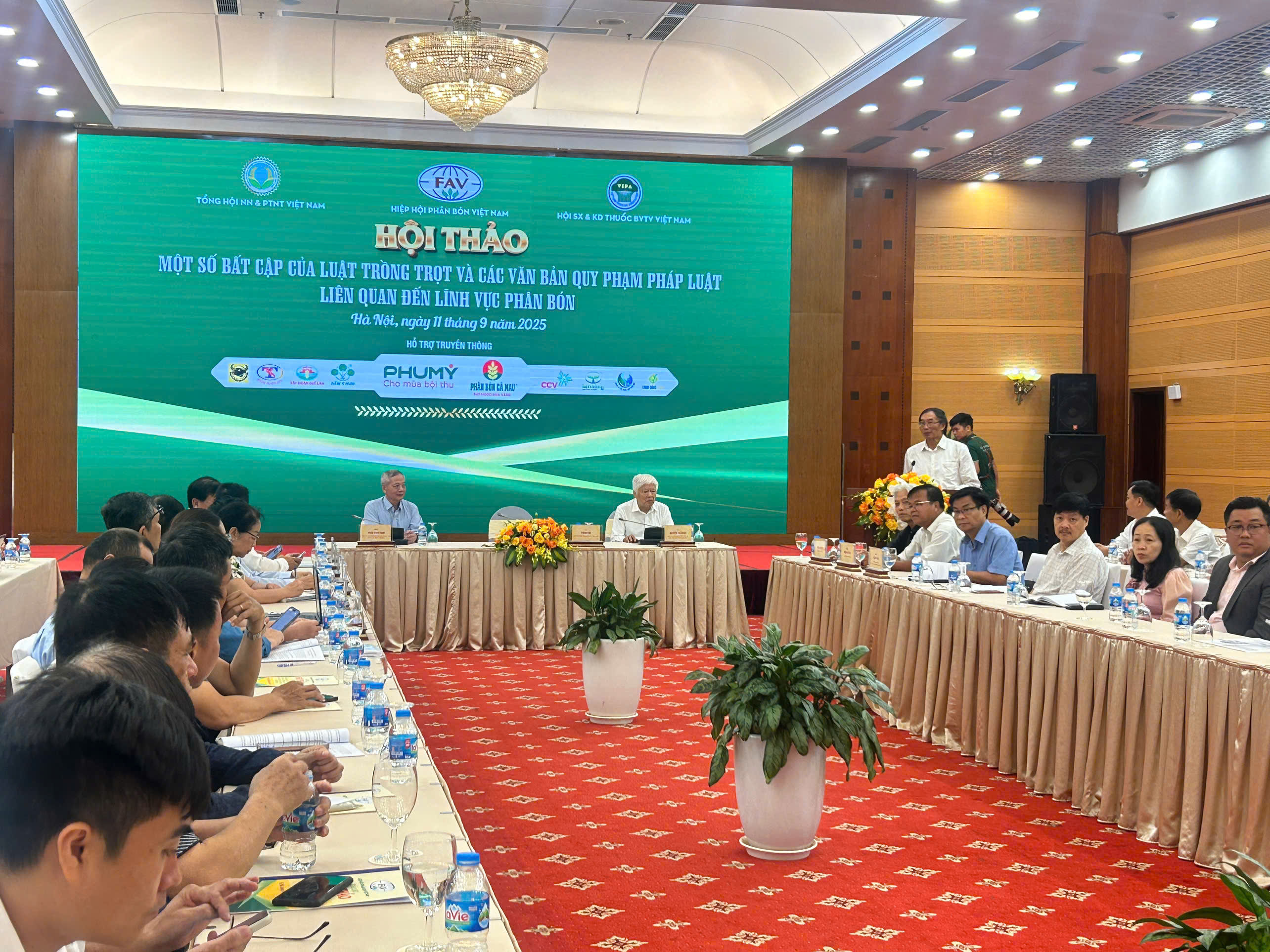 Ngày 11/9/2025, tại Hà Nội, Hiệp hội Phân bón Việt Nam phối hợp với Tổng hội Nông nghiệp và Phát triển nông thôn Việt Nam, Hội Sản xuất kinh doanh Thuốc Bảo vệ thực vật Việt Nam, tổ chức hội thảo: "Một số bất cập của Luật Trồng trọt và các văn bản quy phạm pháp luật liên quan đến lĩnh vực phân bón".