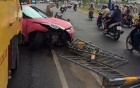 Nữ tài xế phá nát xe với cú tông trực diện vào dải phân cách