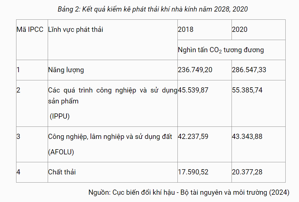 Số liệu tổng hợp trong các báo cáo trình được bày tại chương trình hội thảo tham vấn kết quả kiểm kê quốc gia khí nhà kính và thực hiện giảm nhẹ phát thải khí nhà kính phục vụ xây dựng thông báo quốc gia lần thứ tư của Việt Nam gửi UNIFCCC vừa diễn ra vào ngày 24 tháng 5 năm 2024 cho thấy năm 2020 phát thải nhà kính tại Việt Nam tăng đáng kể so với năm 2018. Tuy nhiên với sự nỗ lực cùng với các chính sách mới về giảm phát thải nhà kính đang và sẽ tiếp tục được được triển khai Việt Nam cam kết giảm 15,8% tổng lượng phát thải khí nhà kính không điều kiện và 43,5% tổng lượng phát thải khí nhà kính có điều kiện so với kịch bản BAU vào năm 20230, cam kết tới năm 2050 Việt Nam đạt phát ròng bằng 0.