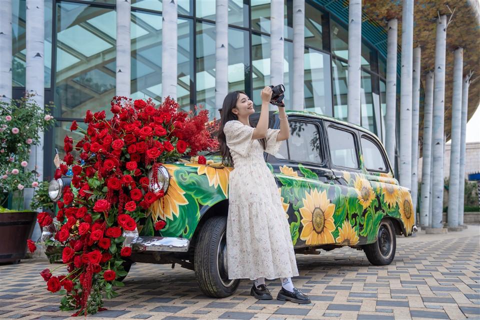 Nếu như vườn hồng cổ Rosa mang đến không gian hoa vừa rực rỡ vừa bí ẩn thì ga đến Taiga dịp này lại hấp dẫn du khách bởi những tiểu cảnh kết hoa hồng độc đáo với những chiếc ô tô cổ kết đầy hoa xinh đẹp, tạo nên những “background” không thể bỏ lỡ cho các tín đồ sống ảo.