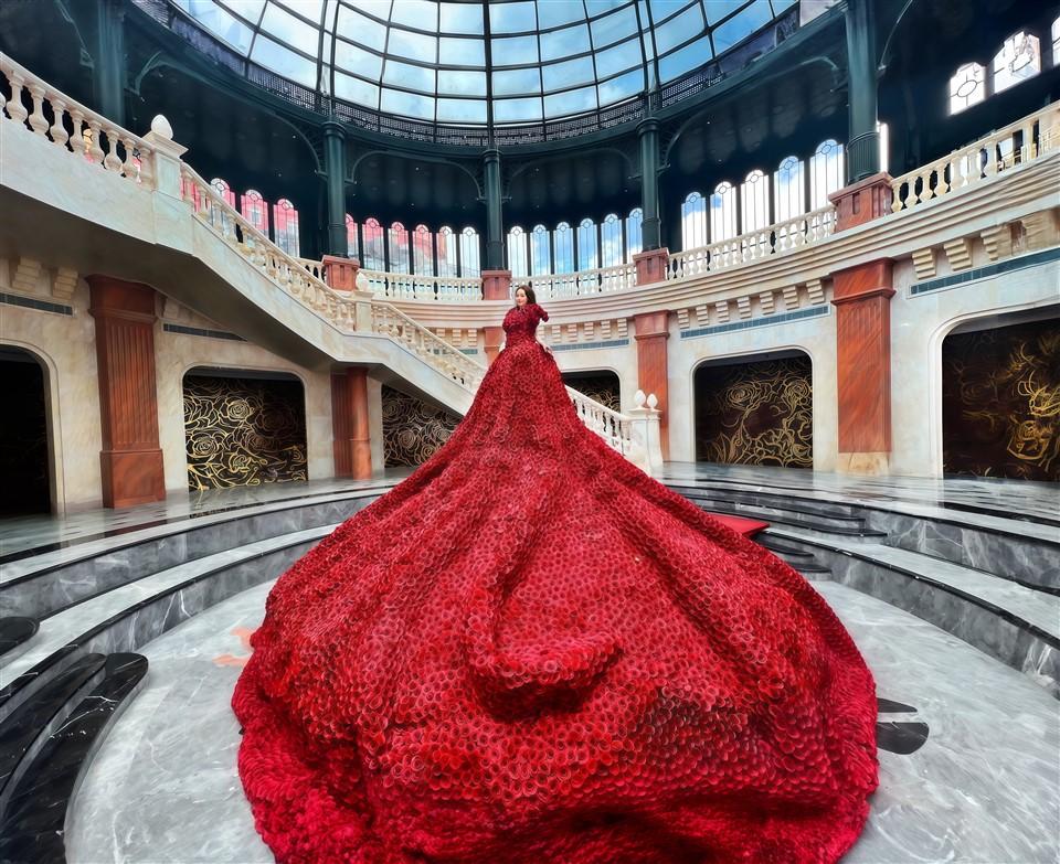 Đặc biệt, đến Bà Nà dịp này, du khách còn có cơ hội chiêm ngưỡng và ghi lại khoảnh khắc độc đáo hóa thân thành nàng công chúa diện chiếc váy hoa hồng khổng lồ- một tác phẩm nghệ thuật được tạo nên từ hàng ngàn bông hồng sáp nhập khẩu tinh tế được đặt tại không gian bên trong Quảng trường Nhật Thực.
