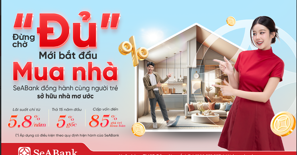 (VietQ.vn) - Giấc mơ “an cư lạc nghiệp” của một bộ phận lớn người trẻ sẽ sớm được hiện thực hóa khi các ngân hàng đồng loạt triển khai chương trình vay mua nhà với lãi suất hấp dẫn. Gói vay “Chắp cánh giấc mơ an cư” của SeABank được thiết kế giúp thế hệ trẻ Việt Nam hiện thực hóa giấc mơ sở hữu ngôi nhà đầu tiên, ổn định cuộc sống và vững bước tương lai với lãi suất chỉ từ 5,8%/năm, thời gian vay tới 55 năm và ân hạn trả nợ gốc 5 năm.