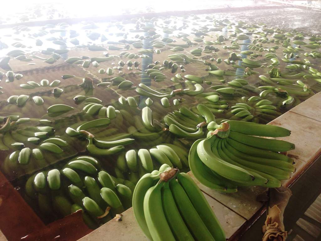 “Khi thu hoạch tính bằng trăm tấn, ngàn tấn, nhưng chăm sóc chuối thì chăm cho từng trái. Sau khi chuối lớn tương đối, tất cả các buồng sẽ được bọc kín để tránh sâu bệnh và côn trùng gây hại. Nếu một nải chuối chỉ cần có 1 trái bị hư hỏng là chúng tôi sẵn sàng bỏ cả nải để đảm bảo chất lượng”, ông Huy tỉ mỉ cho biết thêm. Sau khi thu hoạch, chuối cũng được được khử sạch bụi, loại bỏ phần cuống thừa để cho đẹp mắt. Sau đó, chuối được thả vào bể nước để khử khuẩn khoảng 15 – 20 phút rồi vớt lên đưa vào túi nylon để hút chân không rồi chuyển vào kho lạnh.