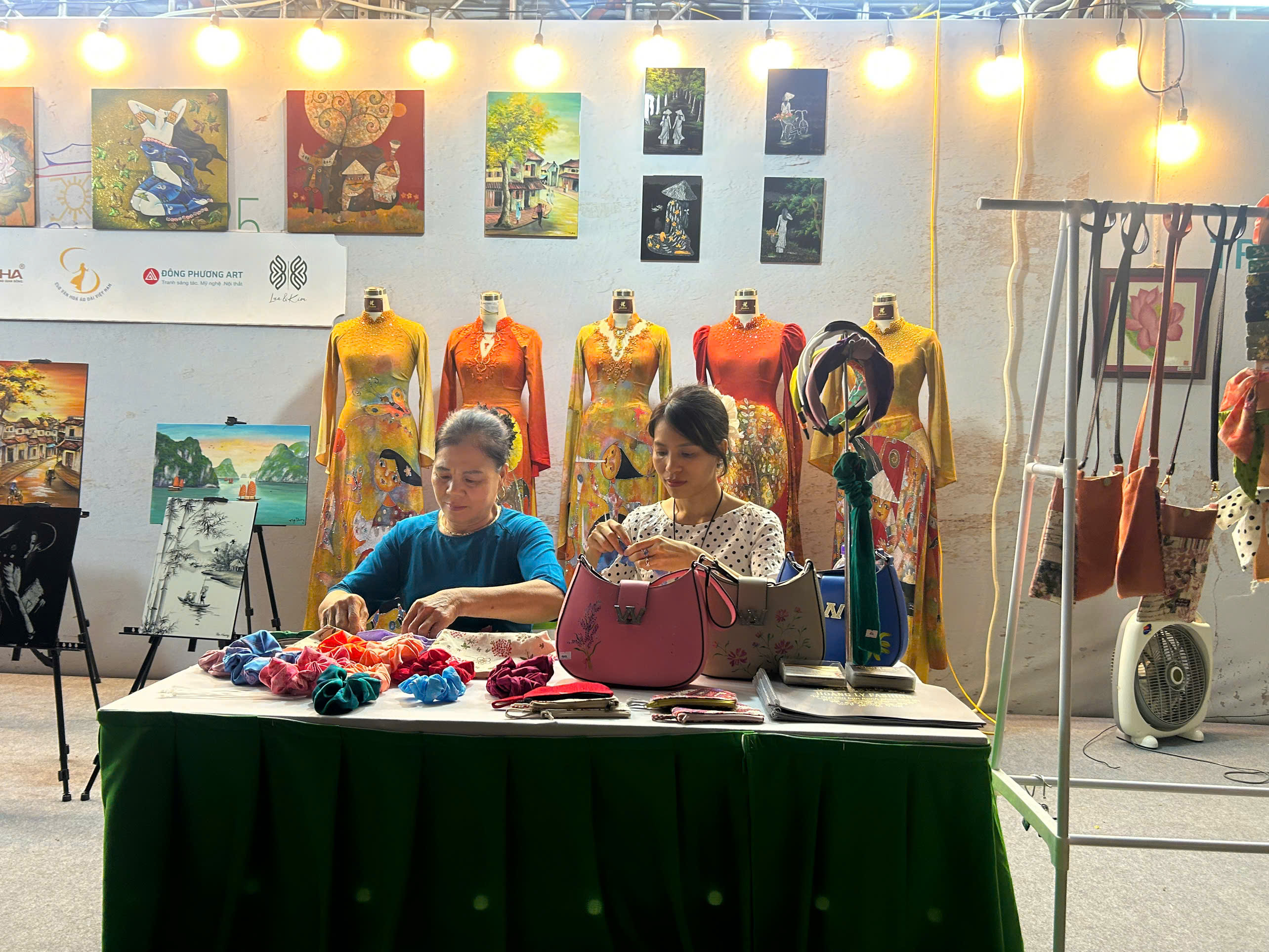 Một trong những điểm thu hút khách tham quan là khu trình diễn của nghệ nhân làng nghề Hà Nội