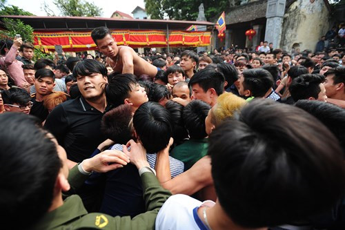 Công an xã rất vất vả giải quyết các đám xung đột khi giằng bông trong lễ hội. Khá nhiều cú va chạm mạnh, trong đó có người sứt đầu mẻ trán song không ai chịu ai và nhất quyết giành bông bằng được, báo Dân Trí đưa tin.