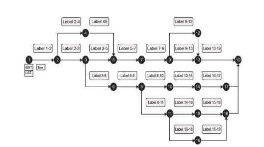 Bước 6: Loại bỏ các nhãn không cần thiết hoặc trùng lặp và nối chúng với nhau bằng mũi tên vẽ bằng bút chì. Tính toán thời gian triển khai ngắn nhất có thể; thời gian bắt đầu và kết thúc sớm nhất cho từng nhiệm vụ.