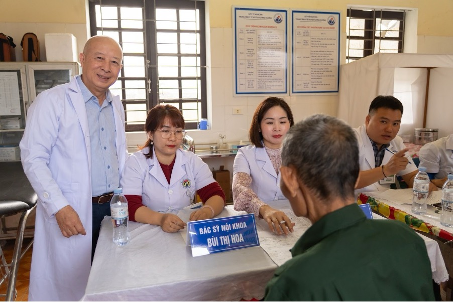 Bác sĩ chuyên môn Longevity tham gia khám chữa bệnh cho người dân xã Yên Hòa.