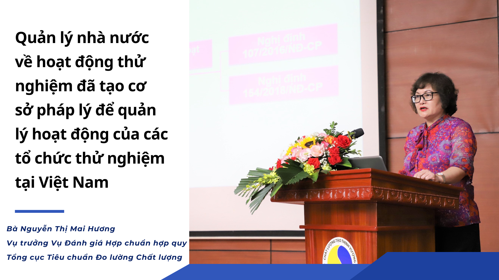 Chia sẻ thông tin xung quanh việc quản lý nhà nước về hoạt động thử nghiệm chất lượng sản phẩm, hàng hóa, bà Nguyễn Thị Mai Hương - Vụ trưởng Vụ Đánh giá Hợp chuẩn hợp quy - Tổng cục Tiêu chuẩn Đo lường Chất lượng (Bộ Khoa học và Công nghệ) cho biết, hiện nay, hoạt động thử nghiệm chất lượng được quy định tại Luật Tiêu chuẩn và Quy chuẩn kỹ thuật, Luật Chất lượng sản phẩm hàng hóa; Nghị định 107/2016/NĐ-CP; Nghị định 154/2018/NĐ-CP...