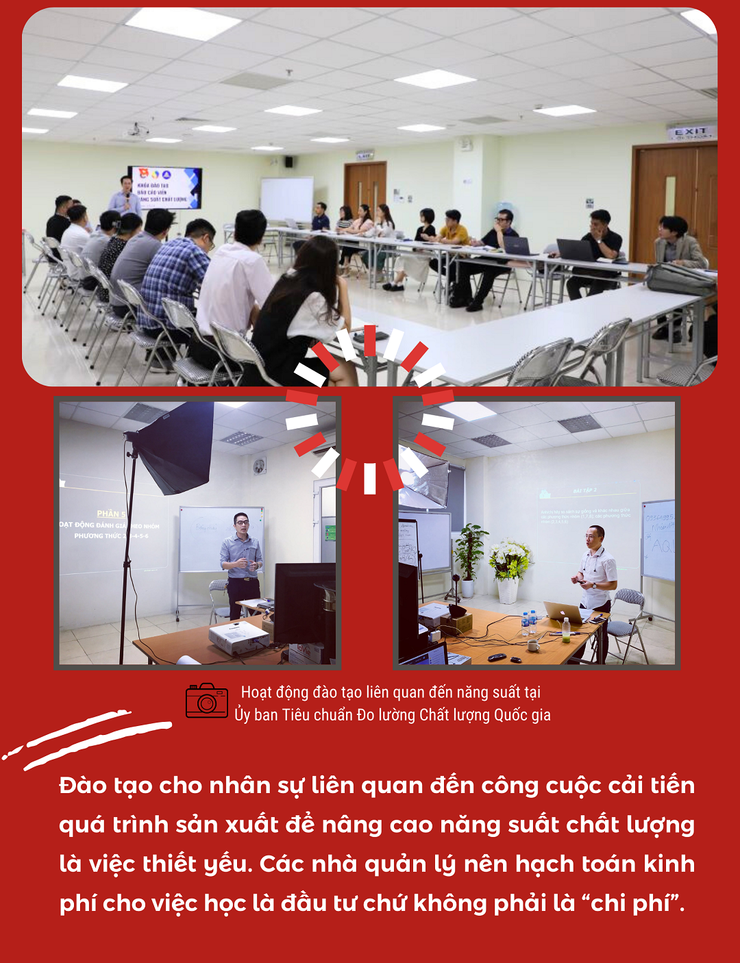 Vì vậy, đào tạo cho nhân sự liên quan đến công cuộc cải tiến quá trình sản xuất để nâng cao năng suất chất lượng là việc thiết yếu: lãnh đạo cần học để hiểu tổng thể, từ đó cam kết thực sự thông qua cung cấp đủ nguồn lực, chỉ đạo, theo dõi, đánh giá và khen thưởng/phạt kịp thời; nhân sự làm trực tiếp cần học để hiểu và làm chủ các phương pháp, công cụ cải tiến sản xuất từ đó ứng dụng trong công việc của mình. Đây là việc đầu tư cần thiết và quan trọng để đảm bảo sự thành công bền vững.