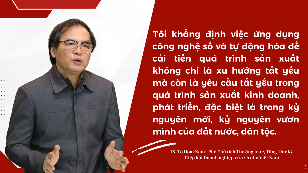 Nói về tương lai của doanh nghiệp Việt Nam trong việc ứng dụng công nghệ số và tự động hóa để cải tiến quá trình sản xuất, ông Tô Hoài Nam cho biết, công nghệ số và tự động hóa là tất yếu, vì nó được hình thành bởi một số thành tố sau: