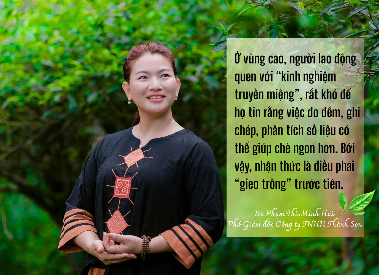 (VietQ.vn) - Trong cuộc trò chuyện với PV Chất lượng Việt Nam (VietQ.vn) bà Phạm Thị Minh Hải – Phó Giám đốc Công ty TNHH Thành Sơn - doanh nghiệp khoa học và công nghệ tại tỉnh Tuyên Quang, chuyên sản xuất các sản phẩm từ chè Shan Tuyết cổ thụ Tây Côn Lĩnh đã chia sẻ về hành trình ứng dụng khoa học công nghệ và các công cụ cải tiến giúp doanh nghiệp vừa bảo tồn giá trị truyền thống, vừa nâng cao năng suất chất lượng, hướng đến phát triển bền vững.