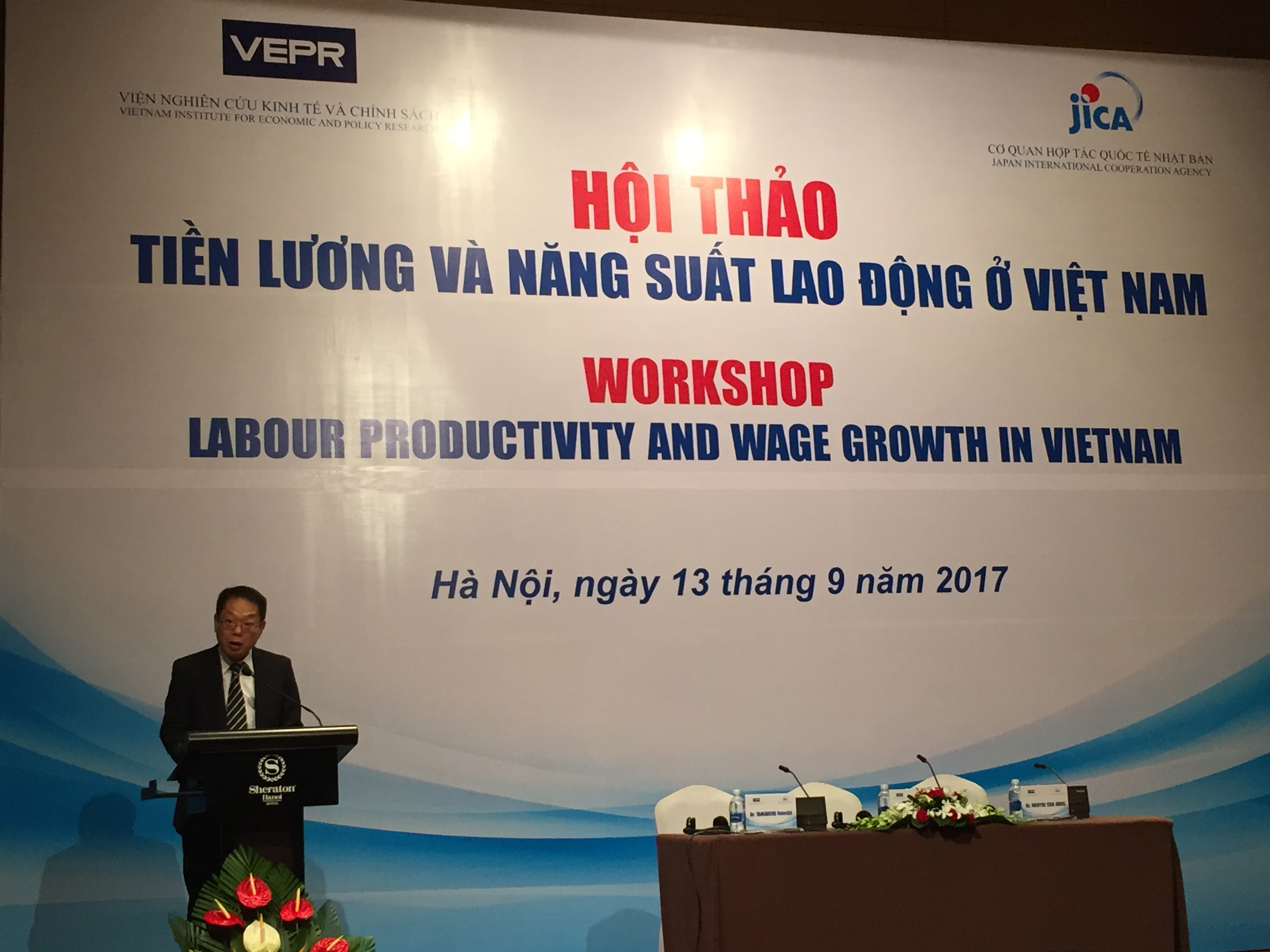 Ông Fujita Yasuo - Trưởng đại diện văn phòng JICA tại Việt Nam phát biểu tại Hội thảo tiền lương và năng suất lao động ở Việt Nam.