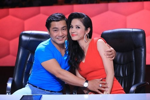 Lý Hùng và Việt Trinh thân thiết trong một gameshow.
