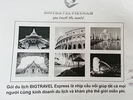 Tờ rơi quảng cáo về chương trình du lịch lừa đảo.