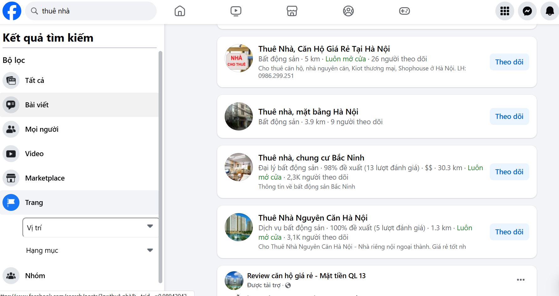 Không khó để tìm kiếm những trang facebook cho thuê nhà, thuê căn hộ.