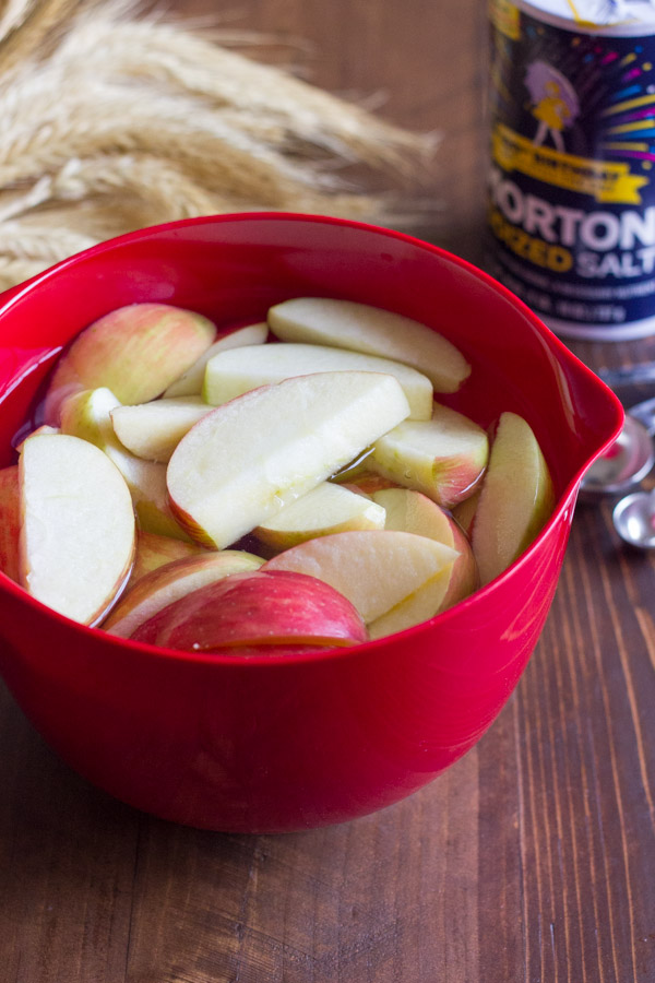 Ngoài nước muối loãng, bạn cũng có thể ngâm táo với nước chanh loãng. Cho khoảng 1 muỗng cà phê nước cốt chanh vào 250ml nước. Cũng chỉ ngâm vài phút là xong.
