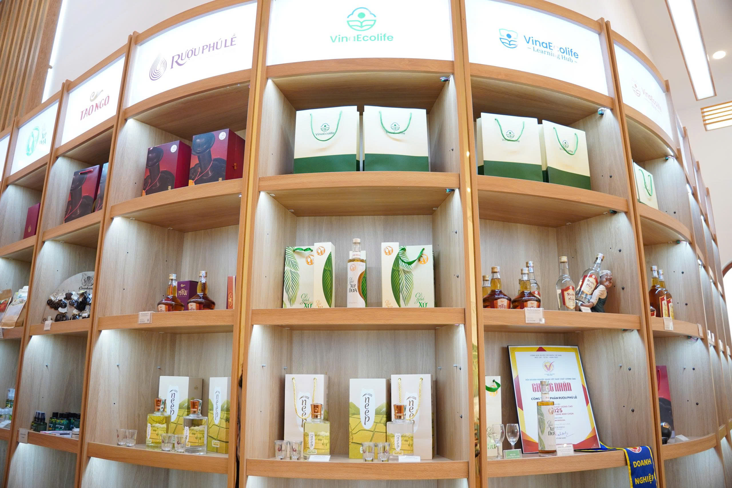 Những sản phẩm của Công ty cổ phần Rượu Phú Lễ được trưng bày tại sảnh Lạc Địa - VinaEcolife Lodge.