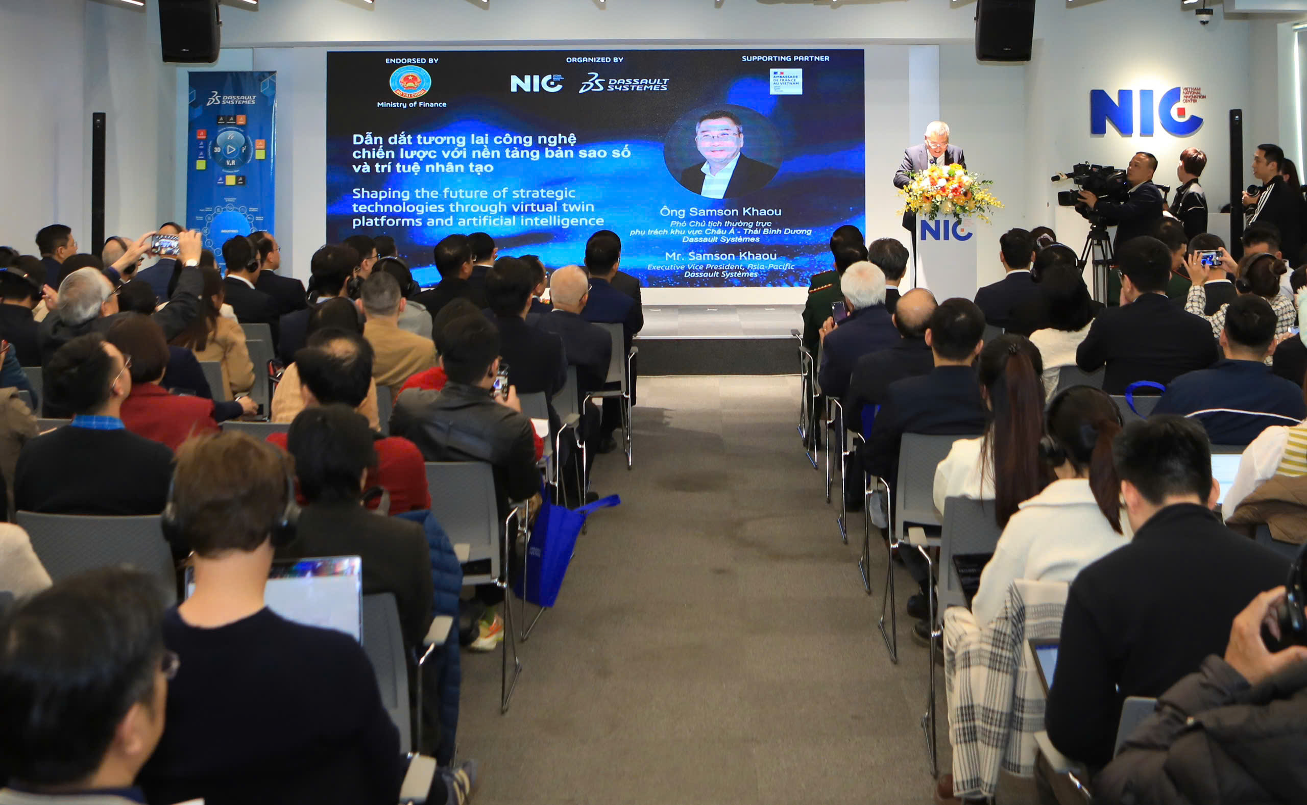 Ngày 08/01/2026, tại Hà Nội, Trung tâm Đổi mới sáng tạo Quốc gia (NIC) phối hợp với Tập đoàn Dassault Systèmes tổ chức Khai trương Trung tâm Nghiên cứu & Phát triển (R&D) và Trung tâm Xuất sắc (Center of Excellence – COE) về Trí tuệ nhân tạo (AI) và Bản sao số (Digital Twin).