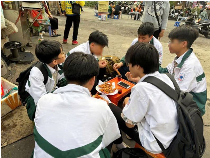 Học sinh tụ tập ăn món "xiên bẩn" rất đông.