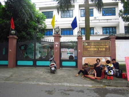 | Nhiều chủ nợ tập trung trước cổng Trường THPT Phương Nam để đòi nợ. |