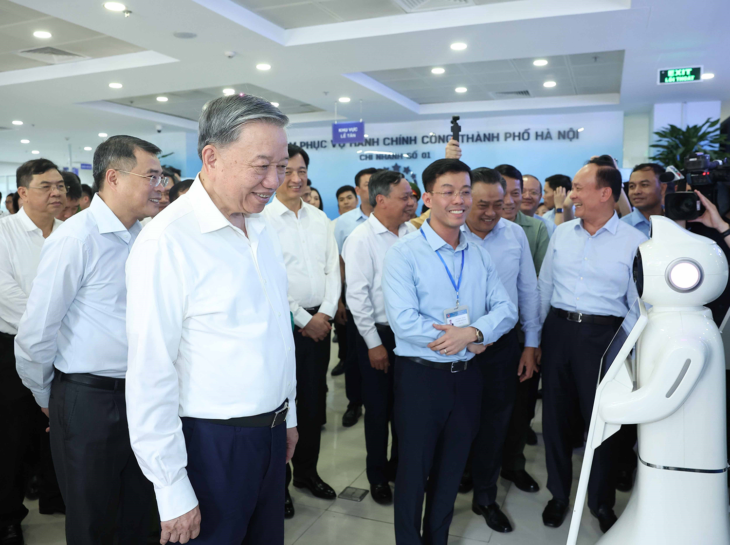 Tổng Bí thư Tô Lâm kiểm tra hoạt động tại Trung tâm hành chính công thành phố Hà Nội. Ảnh: TTXVNBối cảnh mới của thế giới