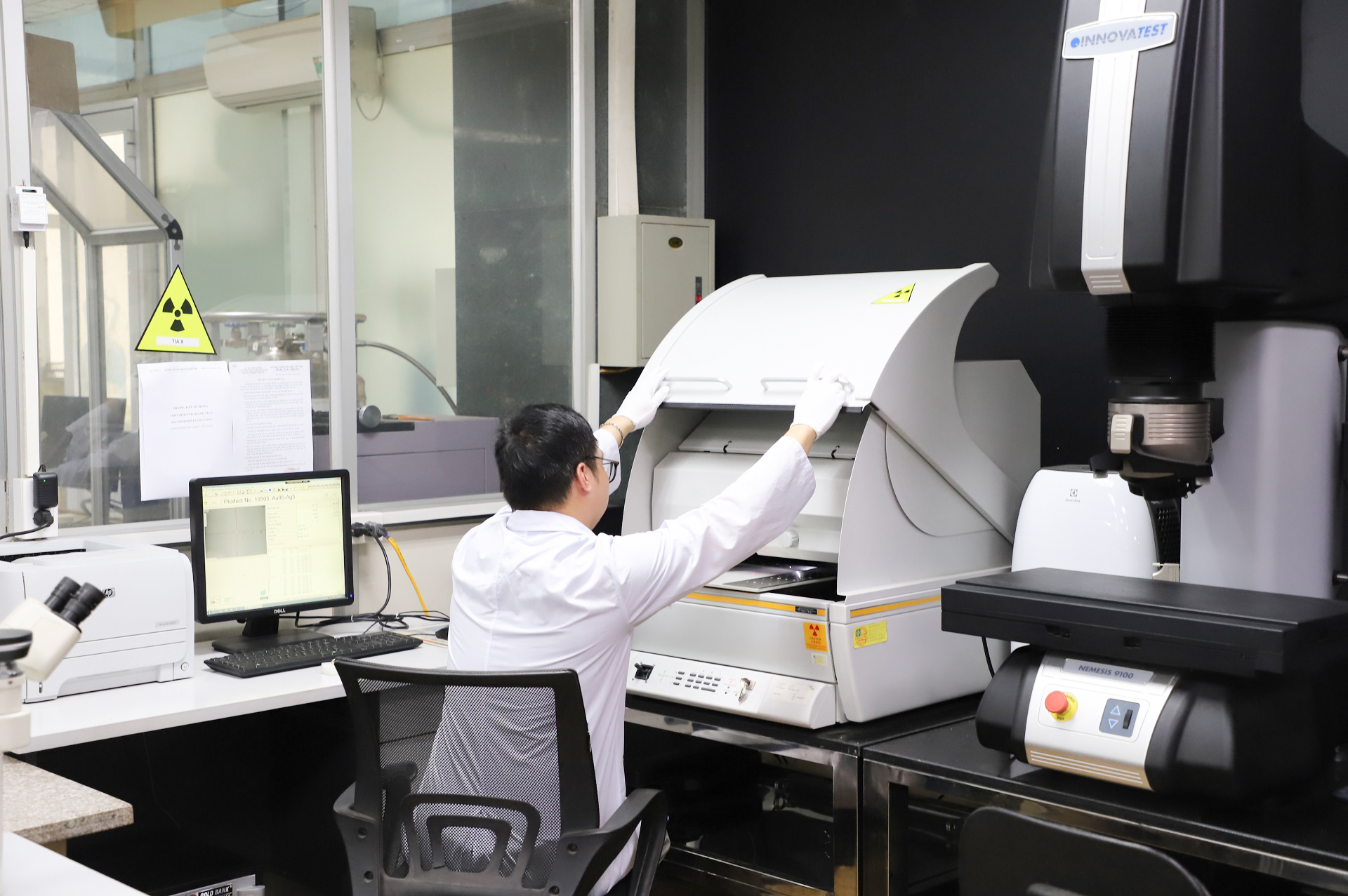 Thử nghiệm viên phân tích thành phần hóa học của vàng trang sức. (Ảnh: Thanh Tùng)