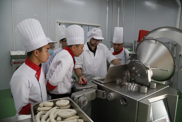 Những ngày đầu làm quen với máy móc hiện đại cùng công thức chế biến mới khiến các nhân sự của xưởng sản xuất không ít lần bối rối bởi phải ghi nhớ quy trình vận hành nghiêm ngặt của máy móc, các công đoạn ướp thịt như thế nào, nhồi thịt ra sao để đảm bảo yêu cầu.