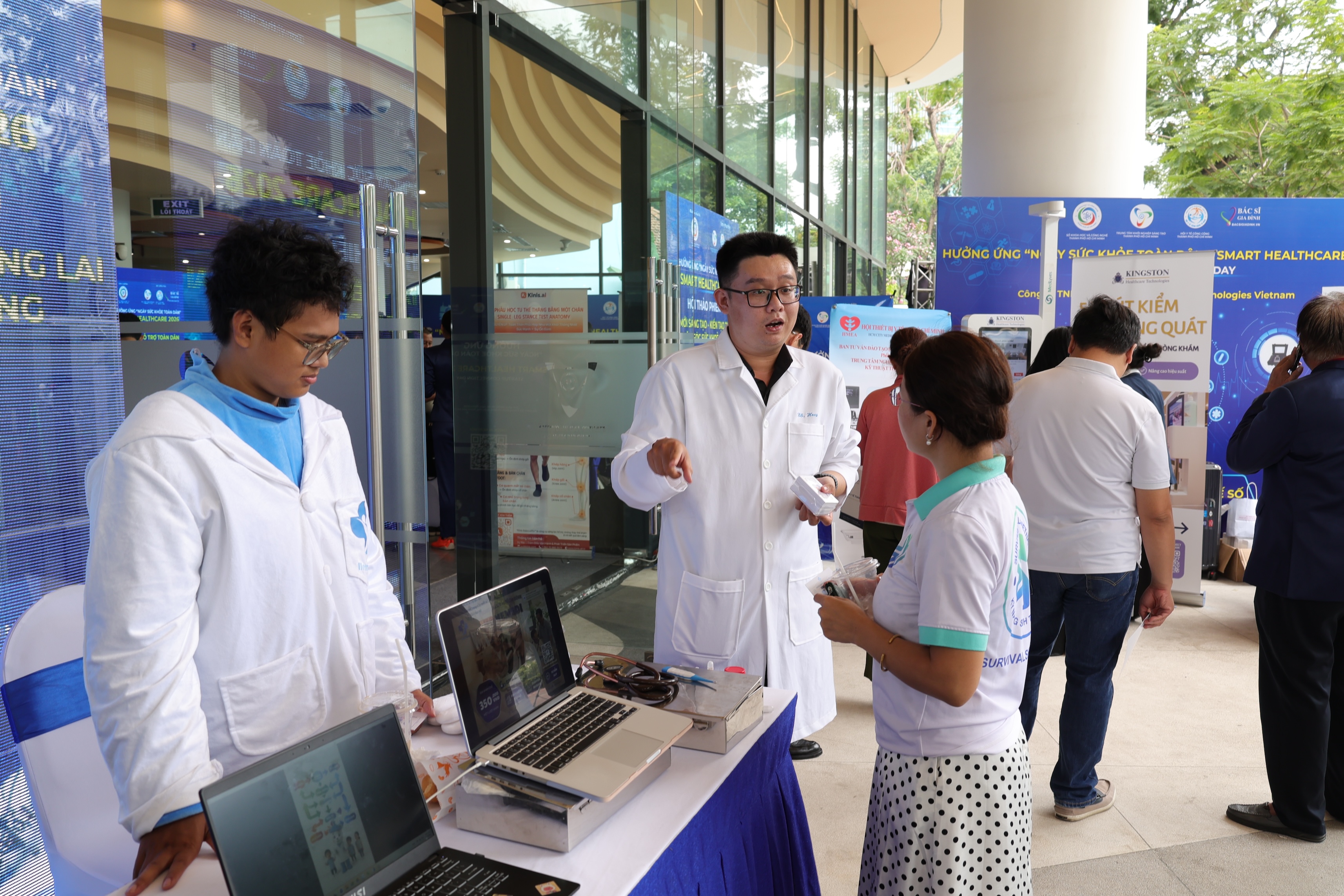 Không gian triển lãm được chia thành nhiều nhóm nội dung trọng tâm. Trong đó, các giải pháp công nghệ số, AI và telehealth thu hút sự quan tâm lớn với các nền tảng theo dõi sức khỏe từ xa, tư vấn y tế trực tuyến và điều phối chăm sóc thông minh. Bên cạnh đó, các giải pháp quản lý bệnh viện và chuyển đổi số y tế cũng được giới thiệu, tập trung vào bệnh án điện tử, phần mềm quản lý phòng khám và hệ thống thông tin xét nghiệm.