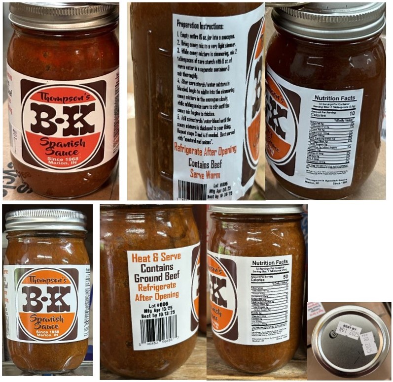 Cụ thể, hai sản phẩm nằm trong diện cảnh báo gồm: Lọ 16 oz (khoảng 454g) nhãn “Thompson's B-K Spanish Sauce”; Lọ 16 oz có nhãn “Thompson's B-K Spicey Coney Sauce”.