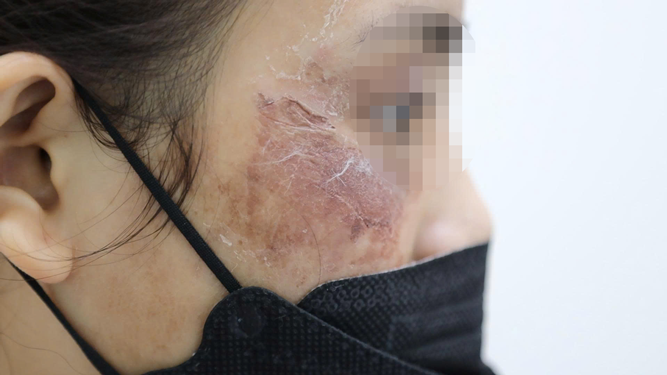 Một nạn nhân bị tổn thương da sau sử dụng sản phẩm làm đẹp mua trên mạng.