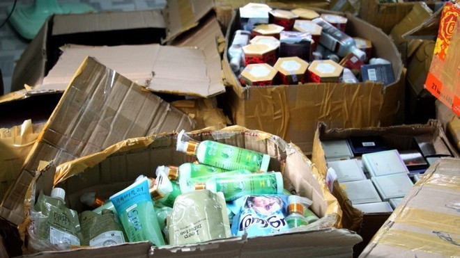 Mỹ phẩm kém chất lượng, không rõ nguồn gốc bán tràn lan trên các sàn thương mại điện tử. Ảnh: Lê Thúy Hằng/TTXVN