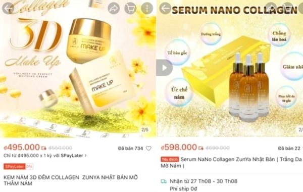 Tình trạng tương tự cũng xảy ra với serum dưỡng trắng da Zunya Nano Collagen – sản phẩm từng bị Bộ Y tế yêu cầu thu hồi vì nhãn ghi công dụng sai. Tuy nhiên, đến cuối tháng 8, sản phẩm này vẫn được rao bán công khai trên Shopee với mức giá từ 600.000 – 650.000 đồng/lọ.