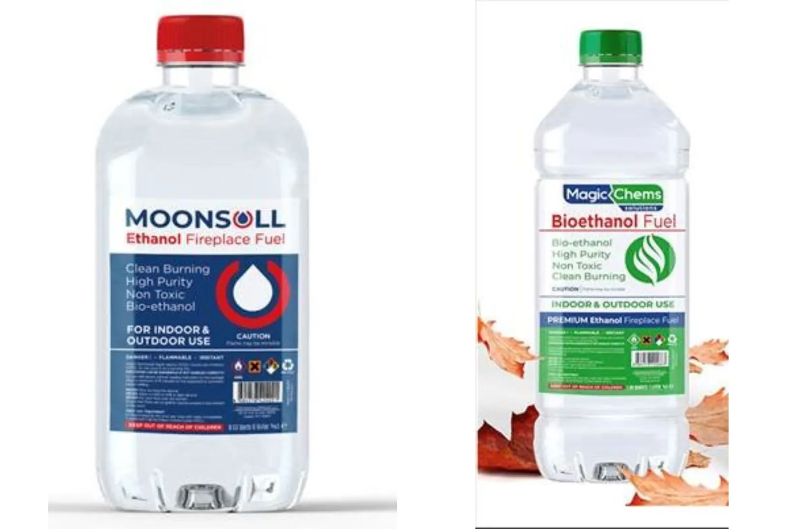 Sản phẩm là các chai nhựa trong suốt dung tích 500 ml hoặc 1.000 ml, nắp đỏ hoặc xanh, dùng cho bếp đốt ethanol, lò sưởi và các thiết bị đốt trang trí. Người dùng được yêu cầu dừng sử dụng, cất xa trẻ em và liên hệ nhà sản xuất để nhận hoàn tiền.