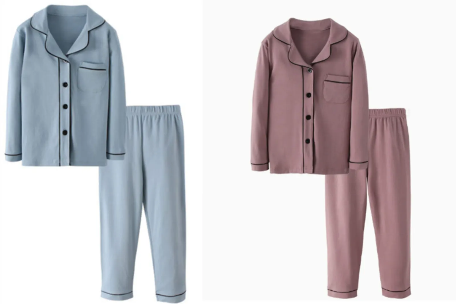 Bộ đồ ngủ bị thu hồi có màu xanh và xám/hồng.