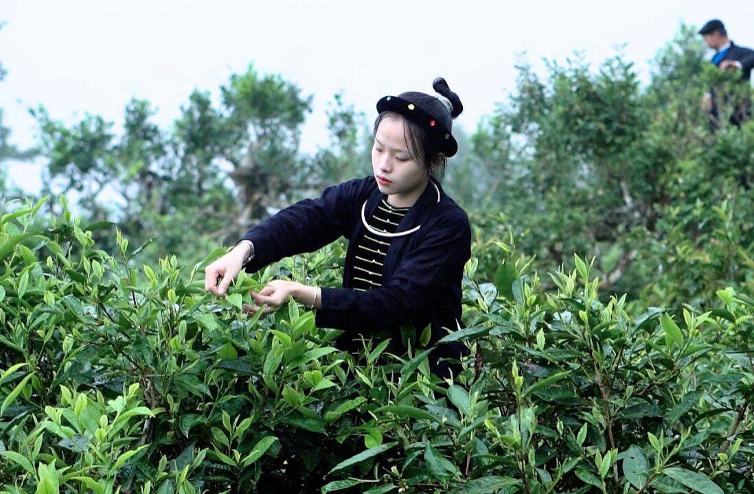 Hái chè shan tuyết cổ thụ vùng núi Tây Côn Lĩnh.