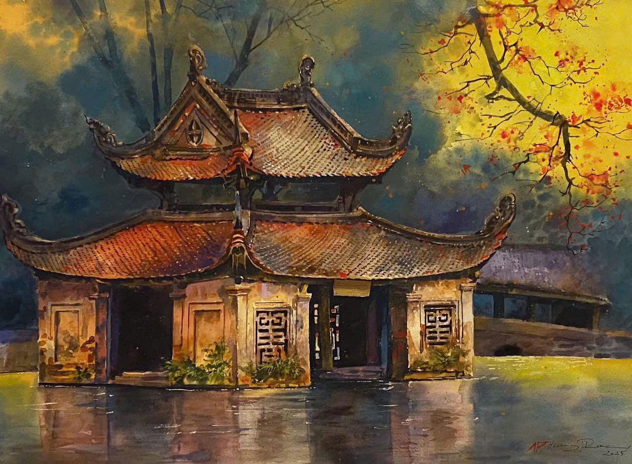Bức tranh Đền Phù Ủng (Hà Nội). Tranh: Hoàng Phong“Về Ngộ” gồm 45 bức tranh về chủ đề Đền Chùa của hoạ sĩ Hoàng Phong – hội viên Hội mỹ thuật TP.HCM, thành viên Hiệp hội màu nước quốc tế IWWS 2015, và là một hoạ sĩ trẻ tài năng theo đuổi trường phái hội hoạ hiện thực. Mang cảm hứng Phật giáo nhưng rất gần gũi với văn hoá tín ngưỡng người Việt, “Về Ngộ” truyền tải thông điệp về trí tuệ, lòng từ bi, sự giác ngộ để kiếm tìm hạnh phúc đích thực.