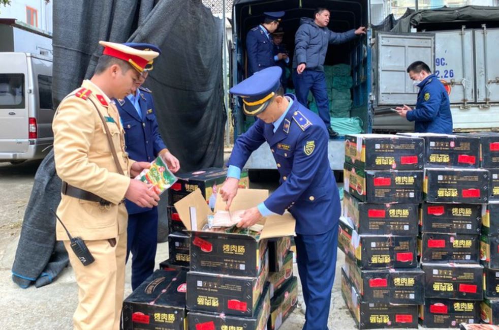 Lực lượng chức năng ngăn chặn một vụ vận chuyển xúc xích nhập lậu.