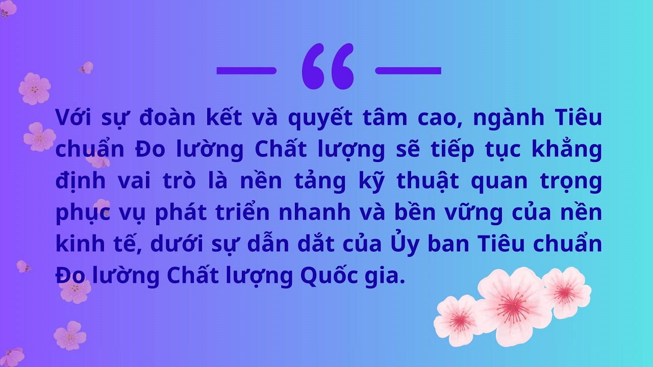 Với sự đoàn kết và quyết tâm cao, ngành TCĐLCL sẽ tiếp tục khẳng định vai trò là nền tảng kỹ thuật quan trọng phục vụ phát triển nhanh và bền vững của nền kinh tế, dưới sự dẫn dắt của Ủy ban.
