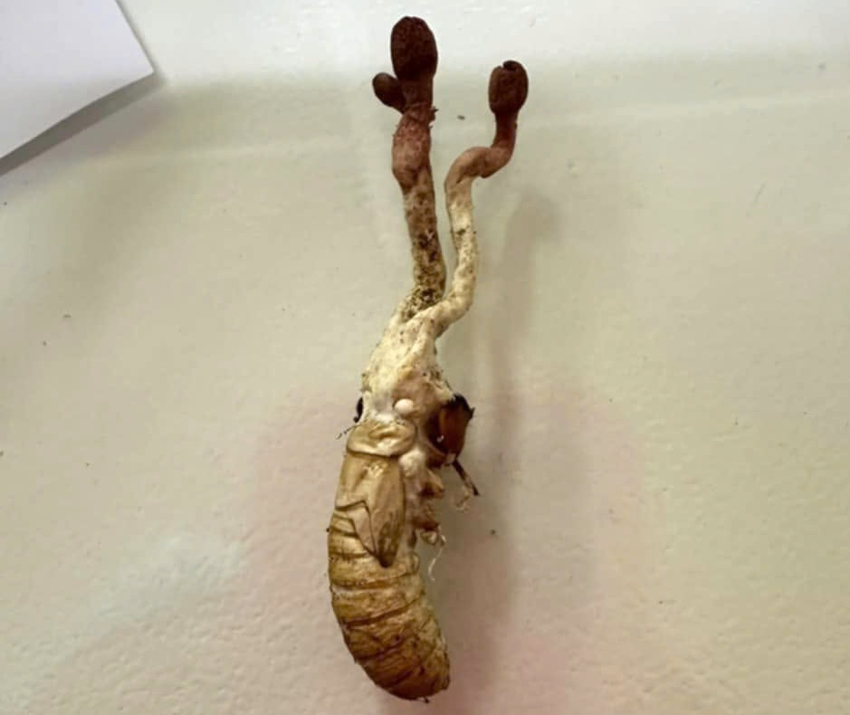 Hình ảnh cây nấm mọc trên nhộng ve sầu mà anh Rlan H. đã ăn phải.