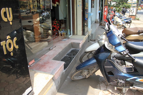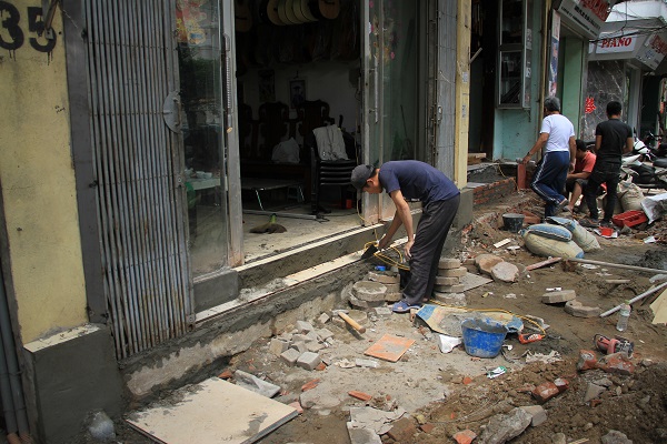 Sau khi bậc tam cấp được phá bỏ, nền nhà của nhiều hộ dân cao hơn vỉa hè từ 50-60cm thế nên nhiều hộ dân chủ động xây dựng lại bậc tam cấp lùi vào trong nhà để thuận tiện hơn cho sinh hoạt, kinh doanh dù trước đó UBND phường Ô Chợ Dừa khẳng định sẽ hỗ trợ khi xây dựng.