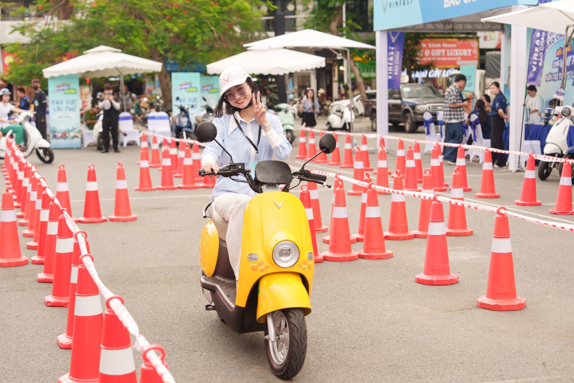 Mẫu VinFast Motio được nhiều khách hàng trẻ tìm hiểu nhờ mức giá tốt.Sau khi lái thử chiếc xe mơ ước, chị Ngọc Duyên đánh giá VinFast Motio phù hợp với nữ giới. Kích thước nhỏ gọn và chiều cao phù hợp giúp việc chống chân thuận tiện. Motio còn là một mẫu xe dễ điều khiển bởi bản thân chị đã dễ dàng đánh lái vượt qua các thử thách trong sa hình của ban tổ chức dù là lần đầu cầm lái.