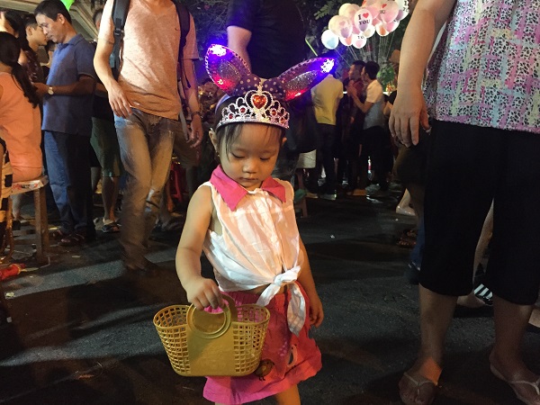 Các em bé được bố mẹ tranh thủ đưa đi chơi tết Trung thu 2016.