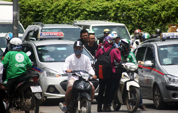 Một số xe ôm, ngang nhiên chở quá số người quy định. Ảnh: Lan.