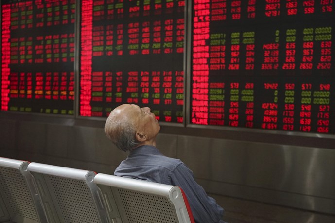Một người chơi chứng khoán theo dõi thông tin cổ phiếu ở Bắc Kinh ngày 21/9