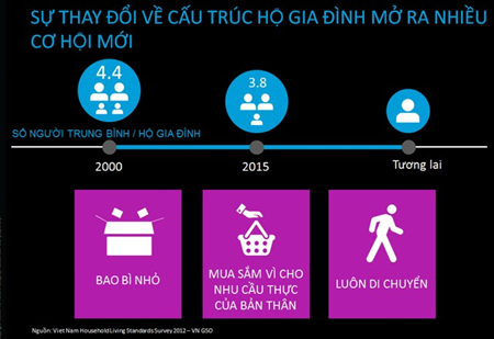 “Khi quy mô một gia đình nhỏ lại, thói quen của người tiêu dùng cũng thay đổi. Họ không cần tới những bao bì, sản phẩm kích cỡ lớn như trước nữa. Các hộ gia đình cũng không tích trữ quá nhiều như trước. Thay vào đó, họ mua theo nhu cầu hiện tại mà thôi.”