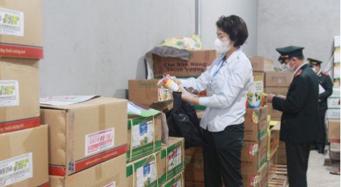Lực lượng thanh tra tỉnh Bắc Giang tiến hành kiểm tra số hàng hóa vi phạm. Ảnh: Báo Bắc Giang