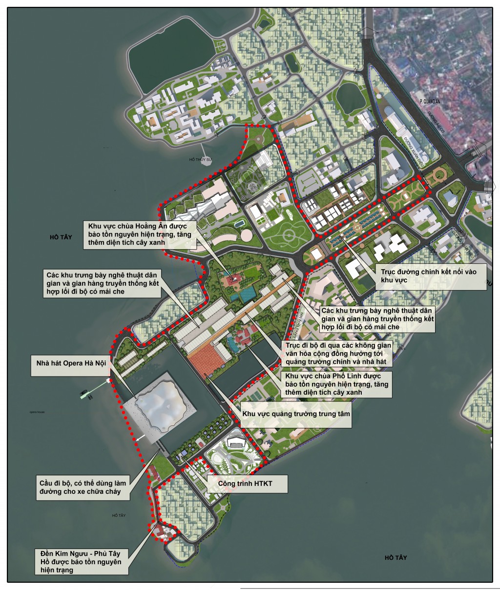 Phê duyệt đồ ánTheo phê duyệt đồ án, tổng diện tích khu đất lập quy hoạch hơn 44ha tại phường Tây Hồ sẽ được quy hoạch thành quần thể công viên văn hóa nghệ thuật chuyên đề, nhà hát thành phố, công trình tôn giáo tín ngưỡng, khu vui chơi giải trí và dịch vụ khách sạn thương mại.