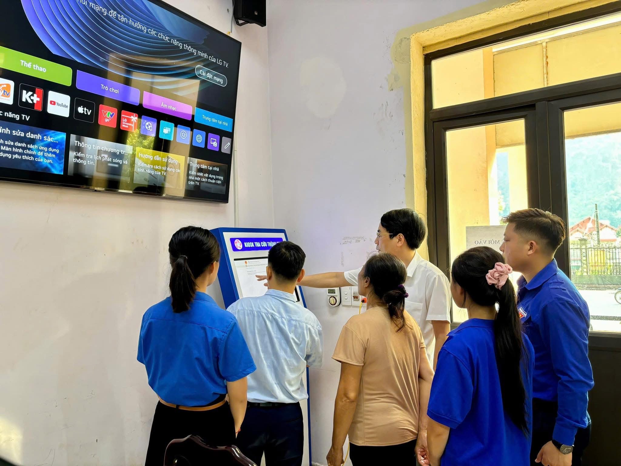 Lãnh đạo xã Kim Bình (Tuyên Quang) hướng dẫn, hỗ trợ người dân thực hiện thủ tục hành chính trực tuyến tại Trung tâm phục vụ Hành chính công xã.