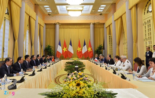 Hội đàm giữ Chủ tịch nước Trần Đại Quang và Tổng thống Pháp Francois Hollande. Ảnh: Tri thức trực tuyến