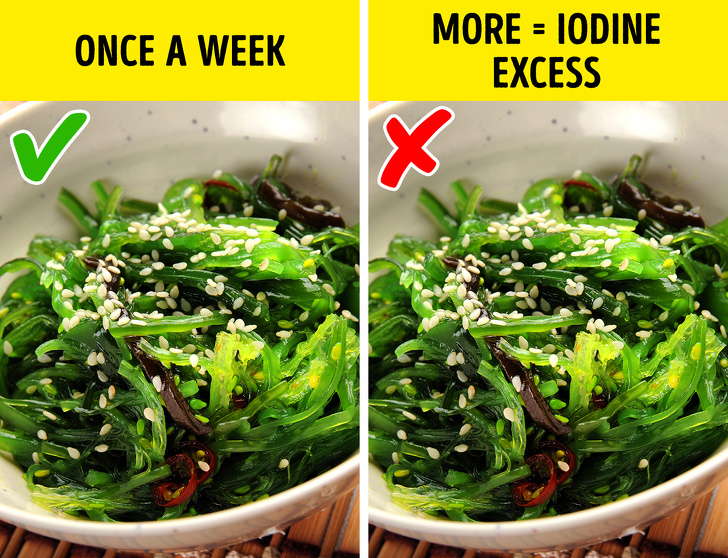 Rong biển là một ví dụ hiếm hoi của thực phẩm phi động vật giàu vitamin B12, điều này giúp nó trở thành một sự thay thế tuyệt vời cho thịt trong chế độ ăn chay. Rong biển cũng đã được quảng bá như một siêu thực phẩm có thể giúp giảm cân nhờ giàu hàm lượng iốt và chất xơ. Nhưng lượng iốt cao có thể dẫn đến các vấn đề về tuyến giáp và thậm chí còn gây tăng cân. Rong biển cũng có thể chứa lượng lớn kim loại nặng tùy thuộc vào nơi nó phát triển.